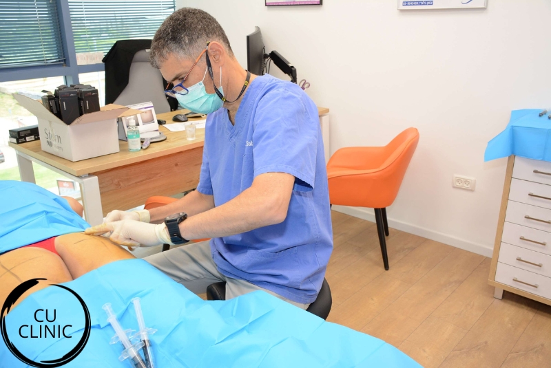 לאחר הרדמה מקומית, הרופא ישתמש בקאנולה (צינורית זעירה וגמישה) להחדרת חומר המילוי, בטכניקה שתבטיח פיזור אחיד של החומר. הוא יזריק ויעצב בקפידה את חומר המילוי כדי להשיג את קווי המתאר והסימטריה הרצויים.